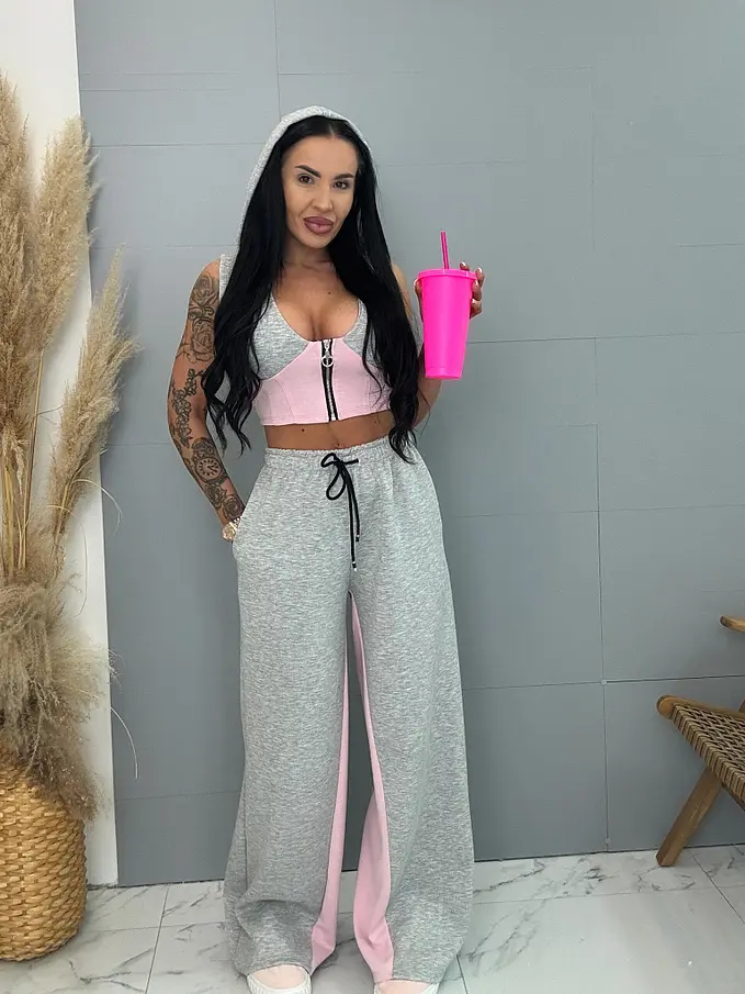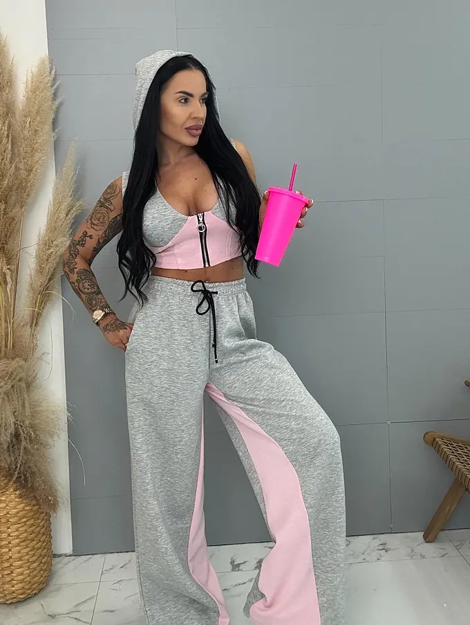 Divatos szett extravagáns hölgyeknek. A szett crop-topból és nadrágból áll. Anyaga rugalmas, nem átlátszó minőségi anyag. A nadrág derékrésze gumis és oldalsó zsebekkel.