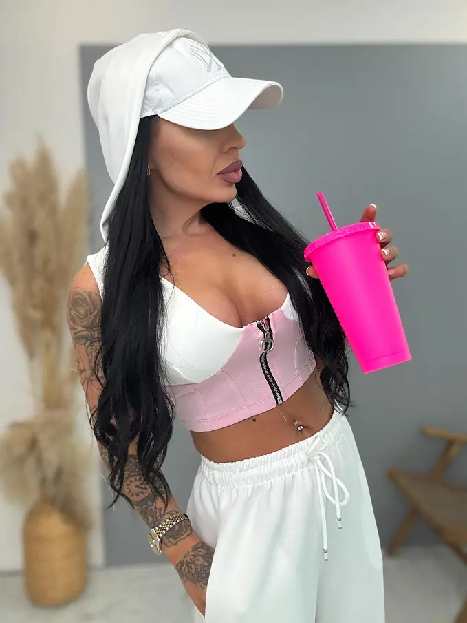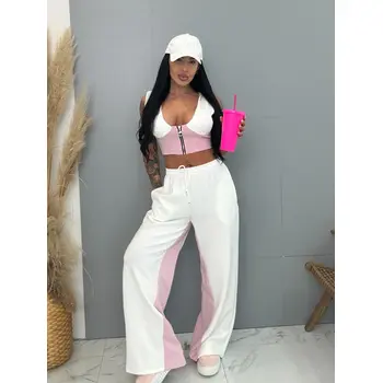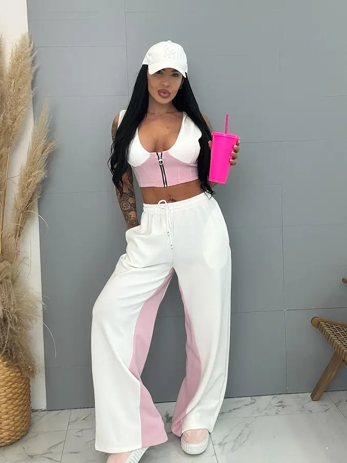 Divatos szett extravagáns hölgyeknek. A szett crop-topból és nadrágból áll. Anyaga rugalmas, nem átlátszó minőségi anyag. A nadrág derékrésze gumis és oldalsó zsebekkel.