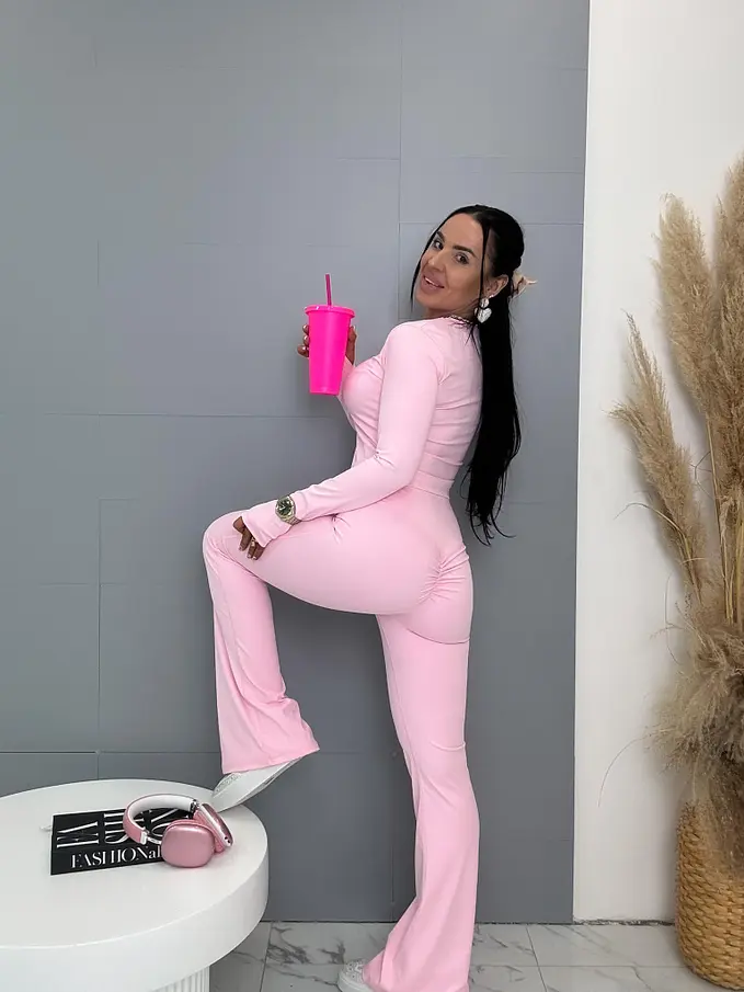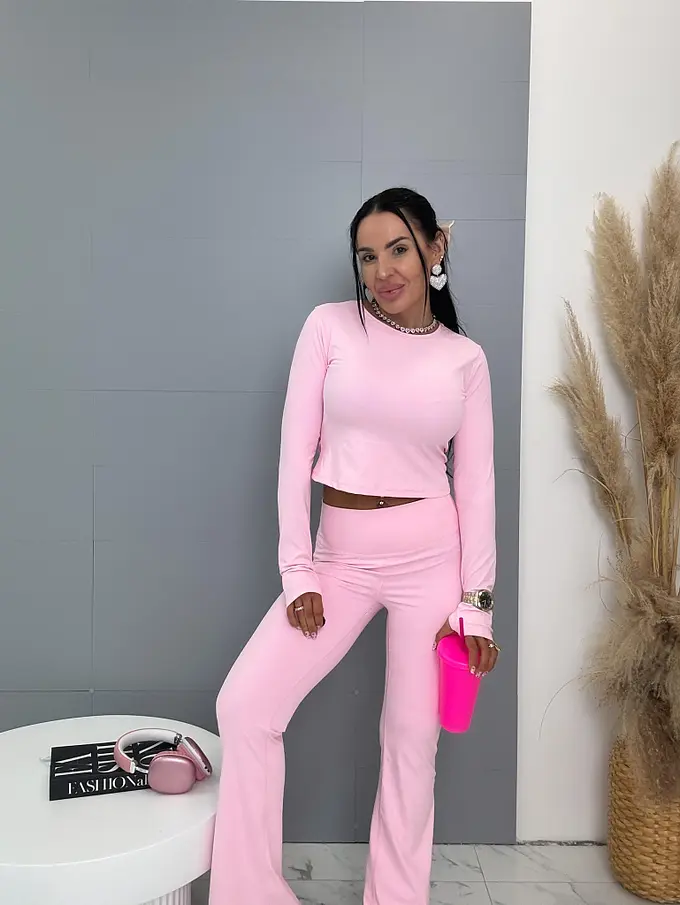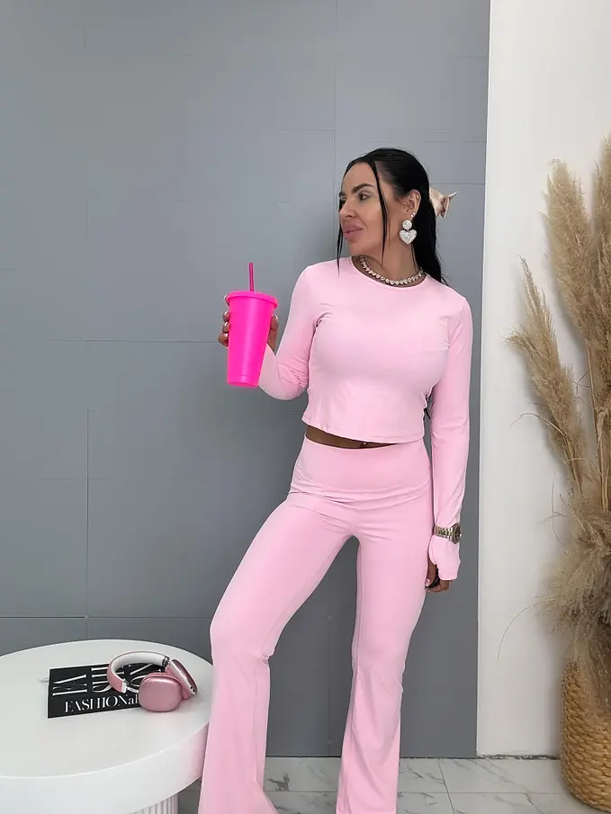 Divatos szett extravagáns hölgyeknek. Egyenesen Franciaországból. A szett hosszú ujjú trikóból és leggingből, formázott/húzott fenékkel áll. Anyaga rugalmas, a nadrág derékrésze gumis.