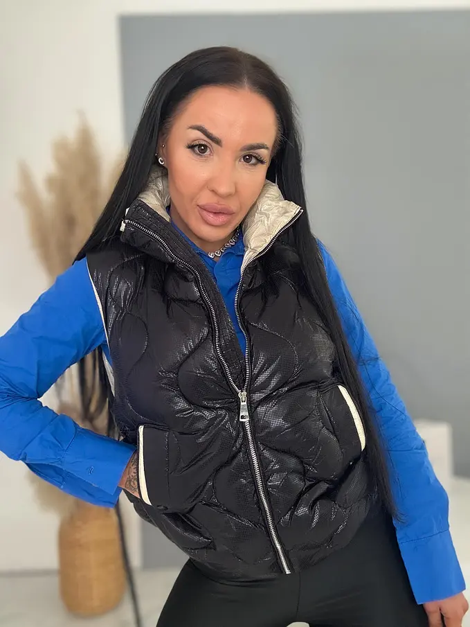 Prémium minőség. A mellény kellemes anyagból készült. A cipzár arany színű.