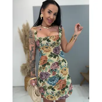 Strukturált virágmintás ruha hátul fűzővel ROSE