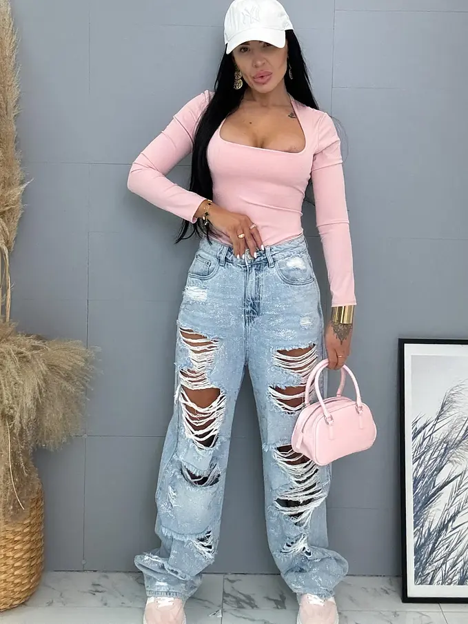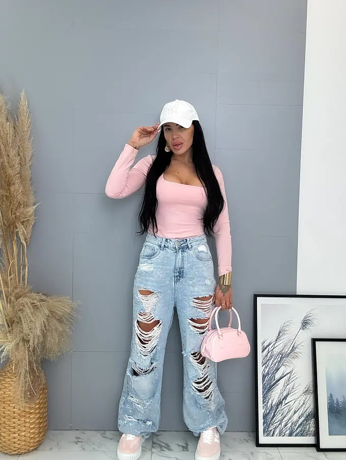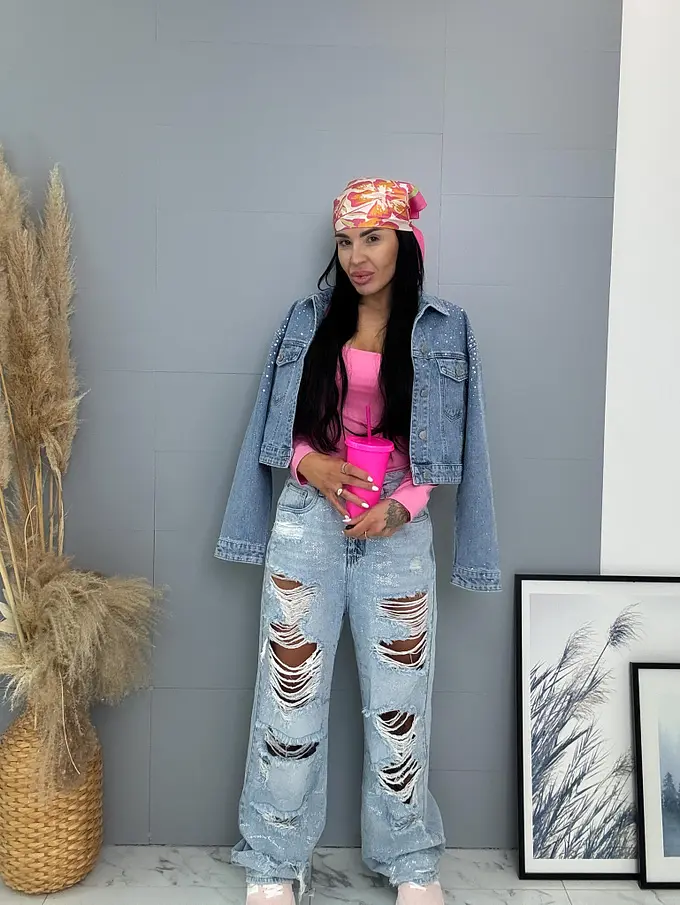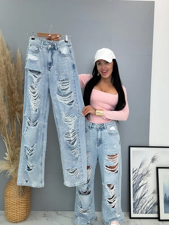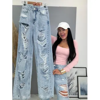 Szaggatott magas derekú wide leg farmer kövecskékkel