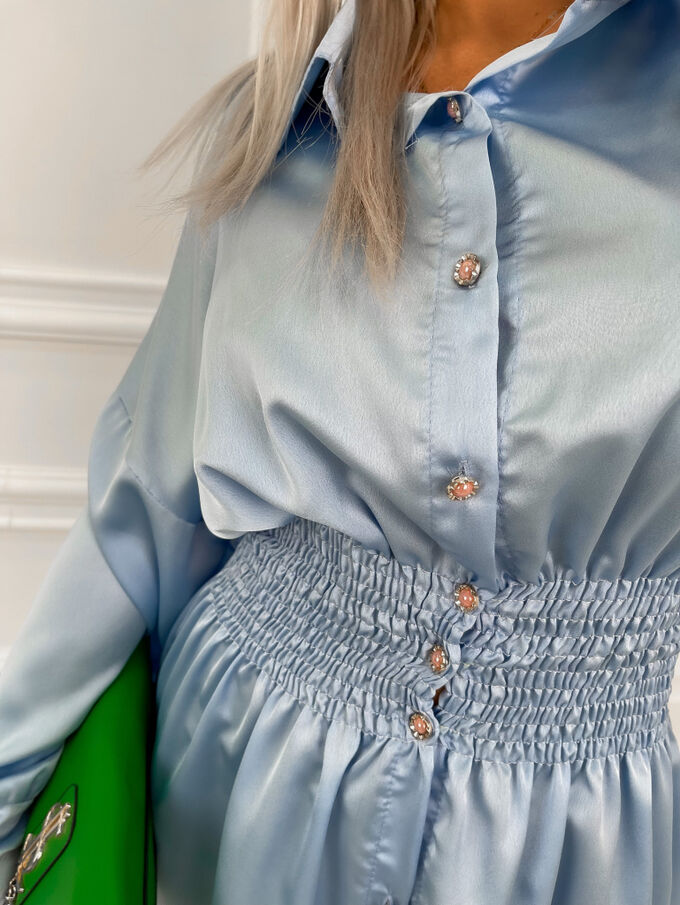 Divatos és elegáns ruha. A ruha gombjai arany színűek.