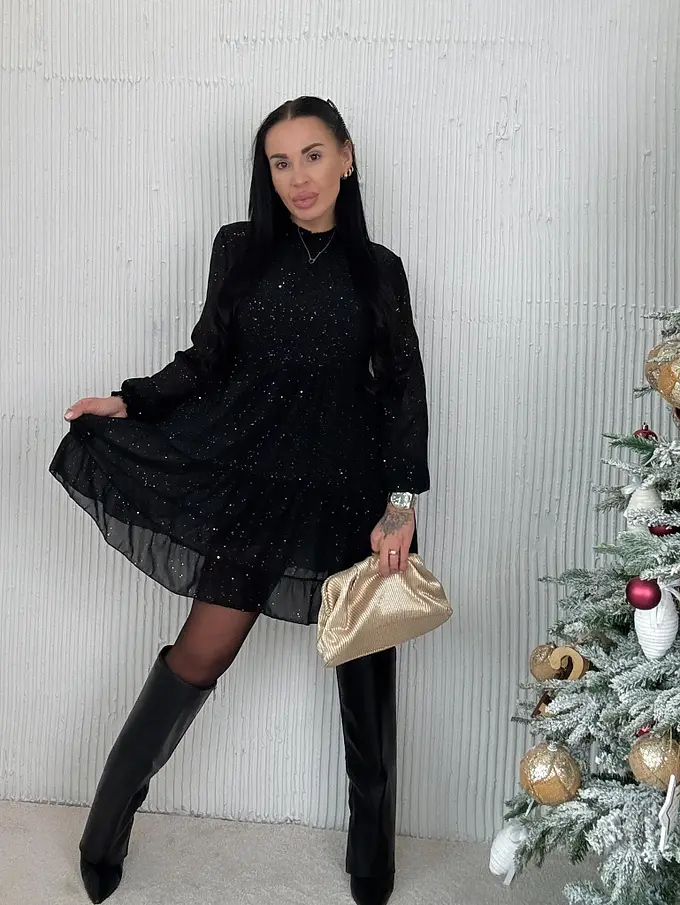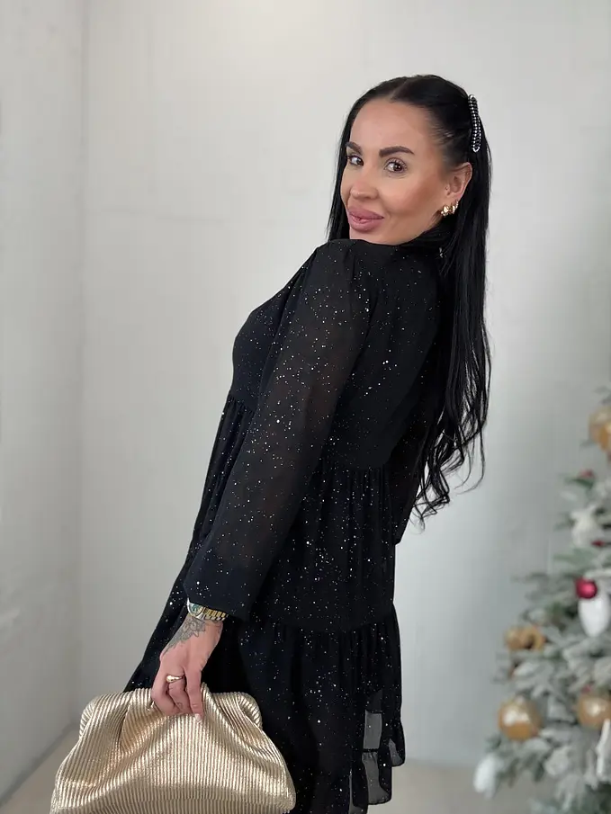 Szatén kövekkel díszített babydoll ruha ZORINA