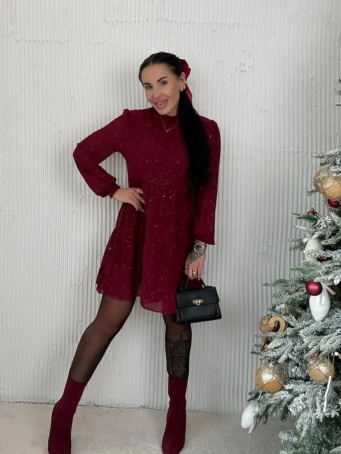 Szatén kövekkel díszített babydoll ruha ZORINA