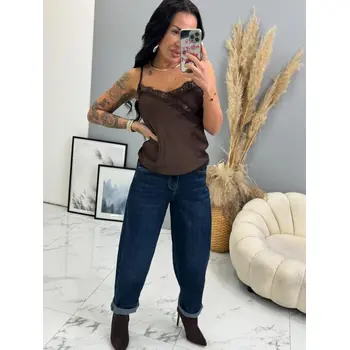Elegáns szatén top finom csipkével és állítható vékony pántokkal.