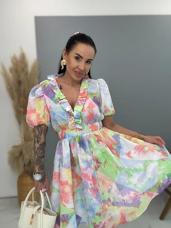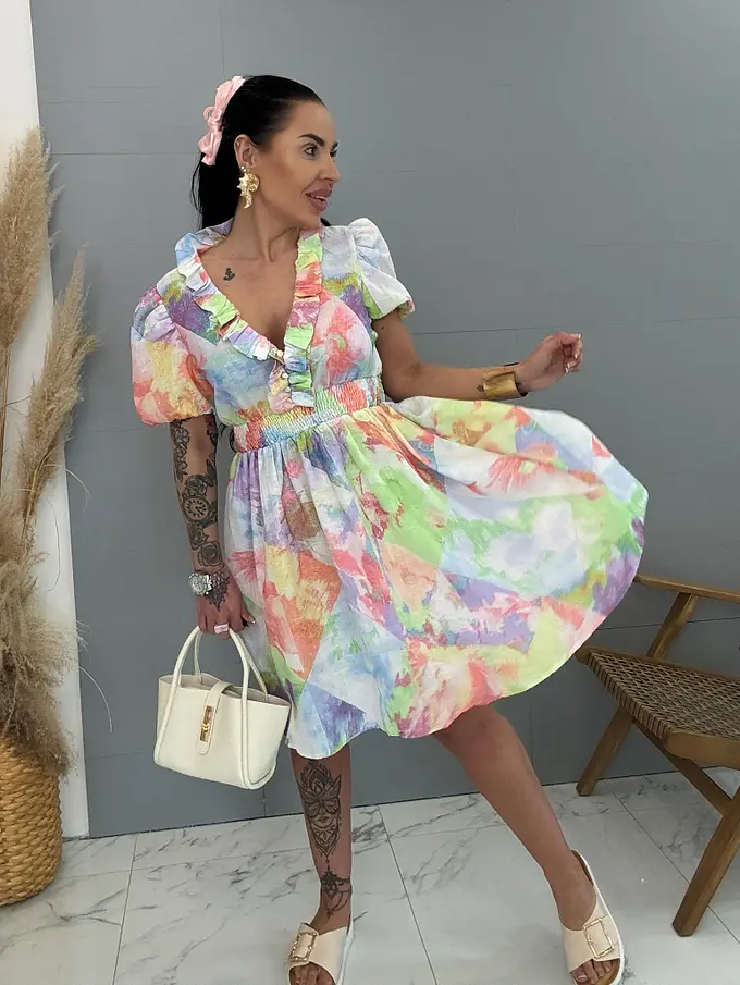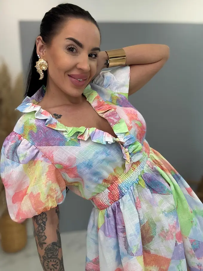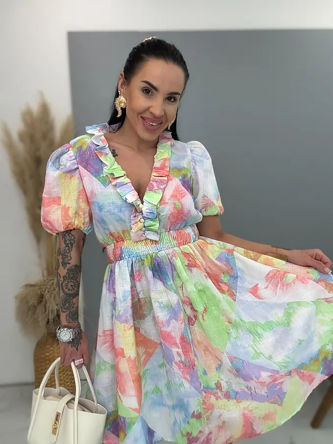 Színes ruha gumis derékkal CUTE