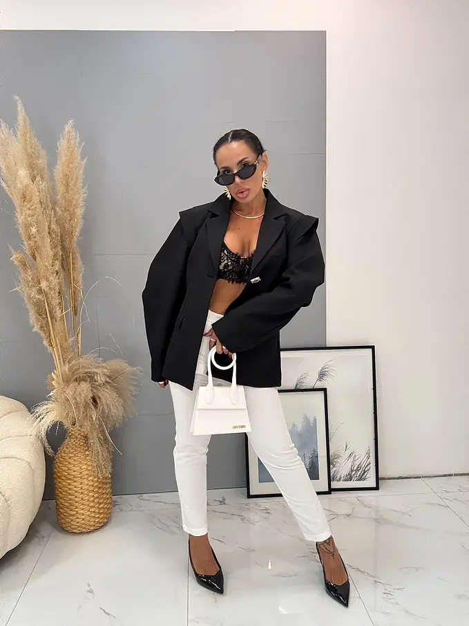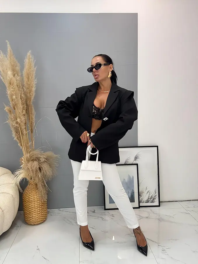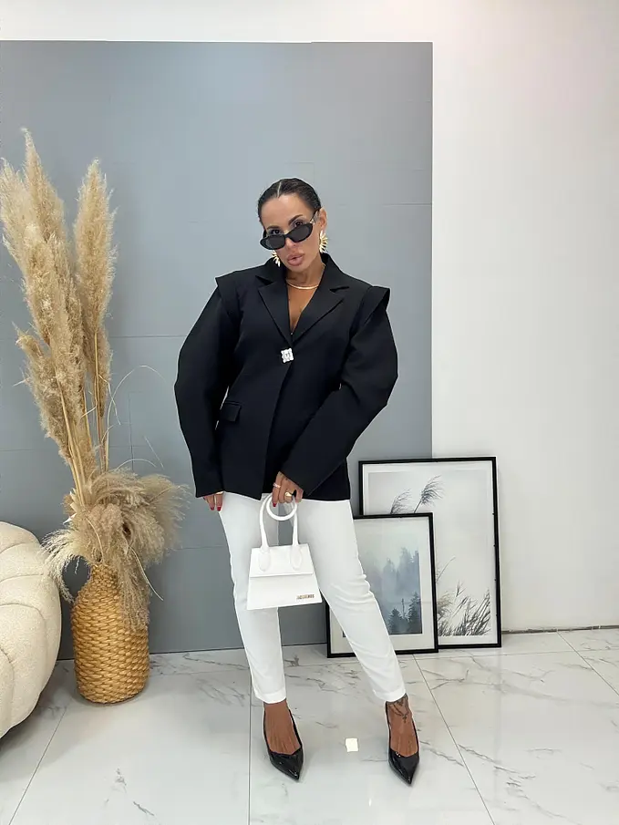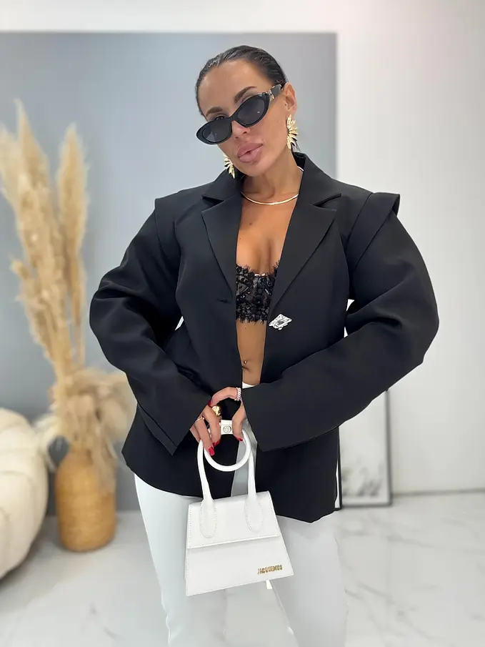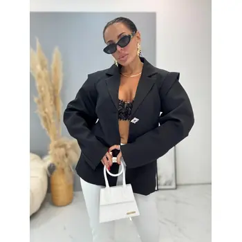 Női zakó, melyben biztosan feltűnő leszel! Anyaga kellemes, nem elasztikus. A bross ezüst színű.