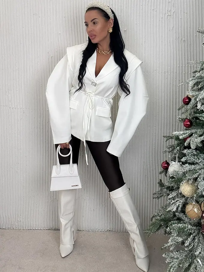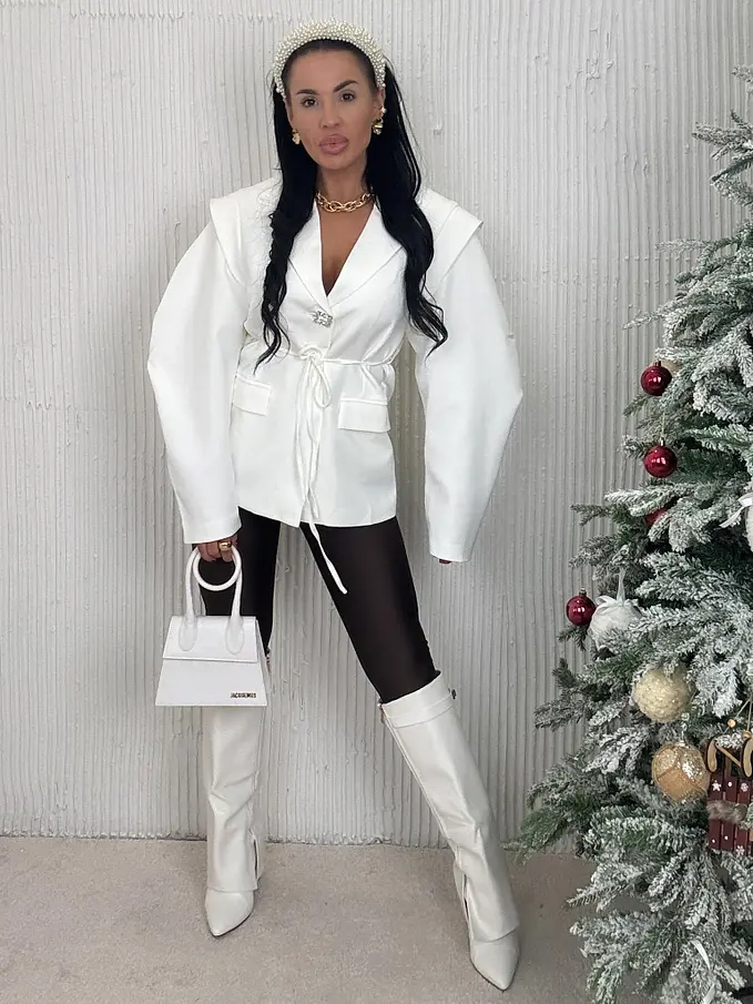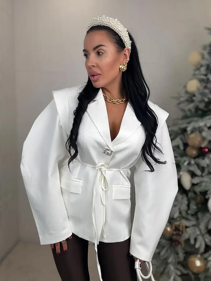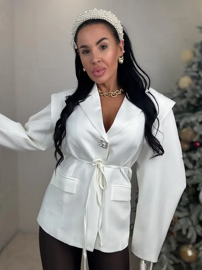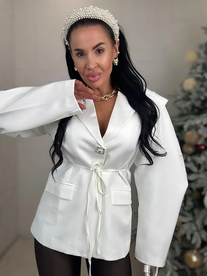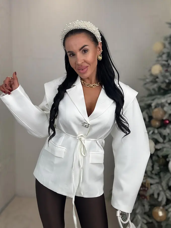 Női zakó, melyben biztosan feltűnő leszel! Anyaga kellemes, nem elasztikus. A bross ezüst színű.