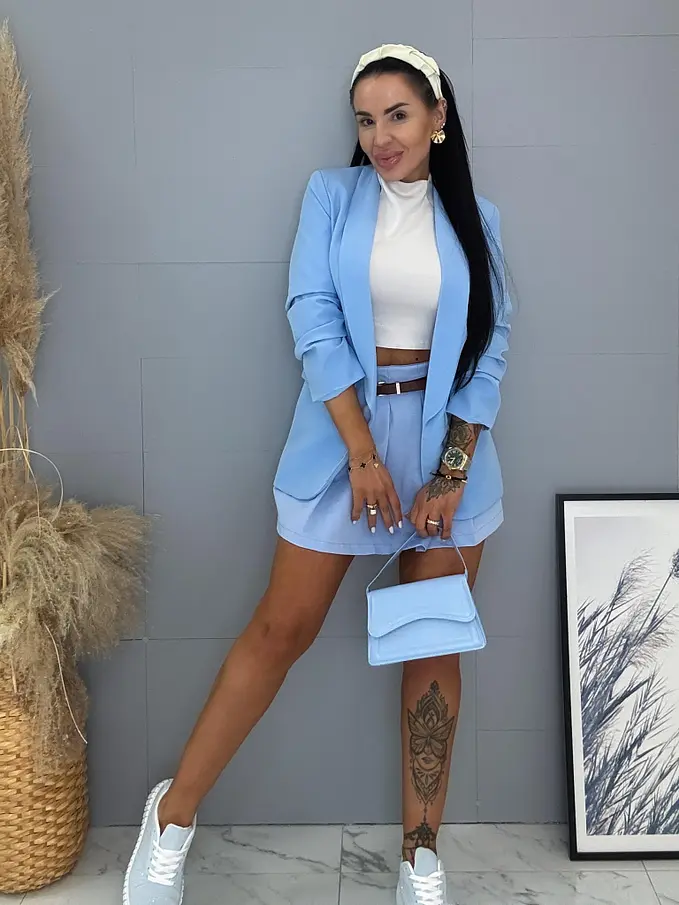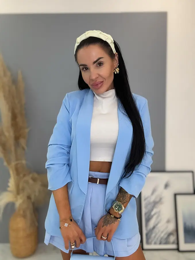 A modell 164 cm magas és 57 kg. S méretű ruhákat visel.