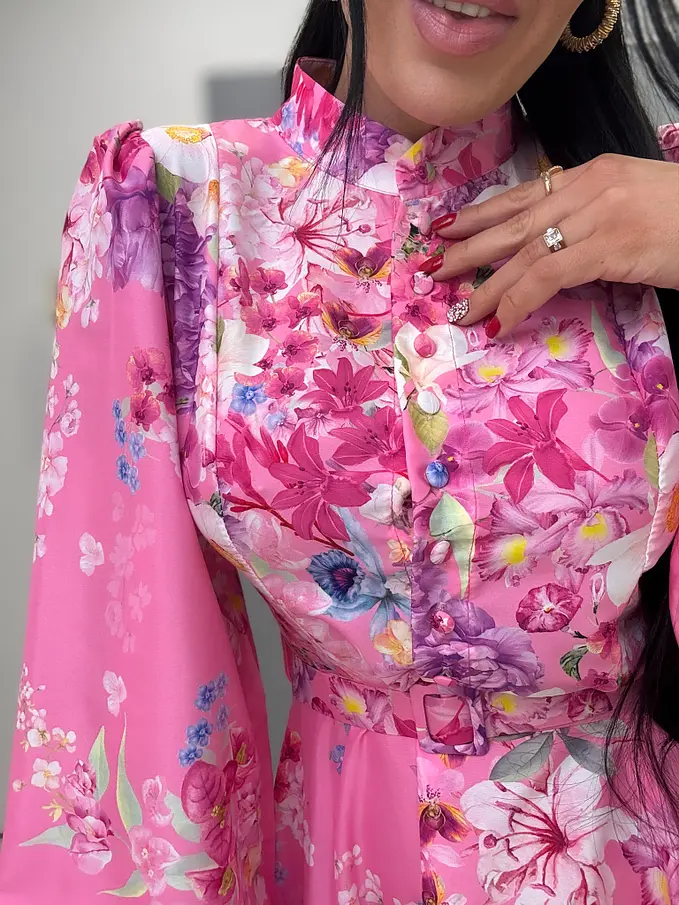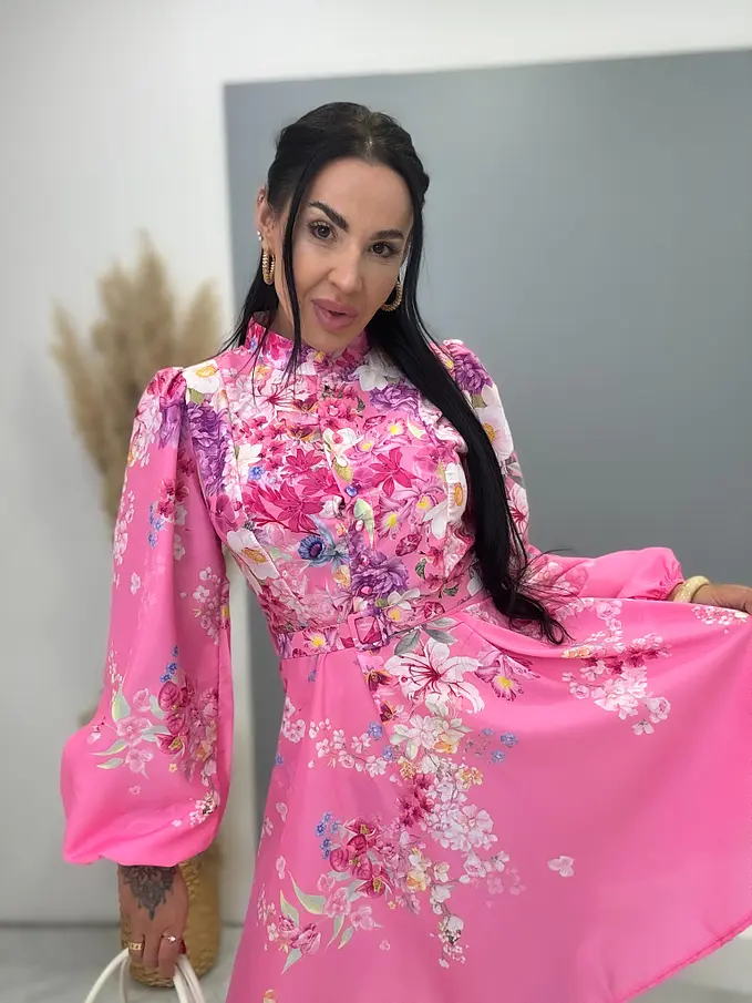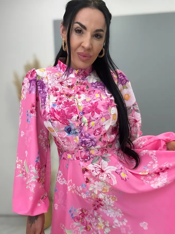 Prémium ruha közvetlenül Olaszországból. Virágmintás ruha gombokkal és övvel. Az anyag rugalmas.