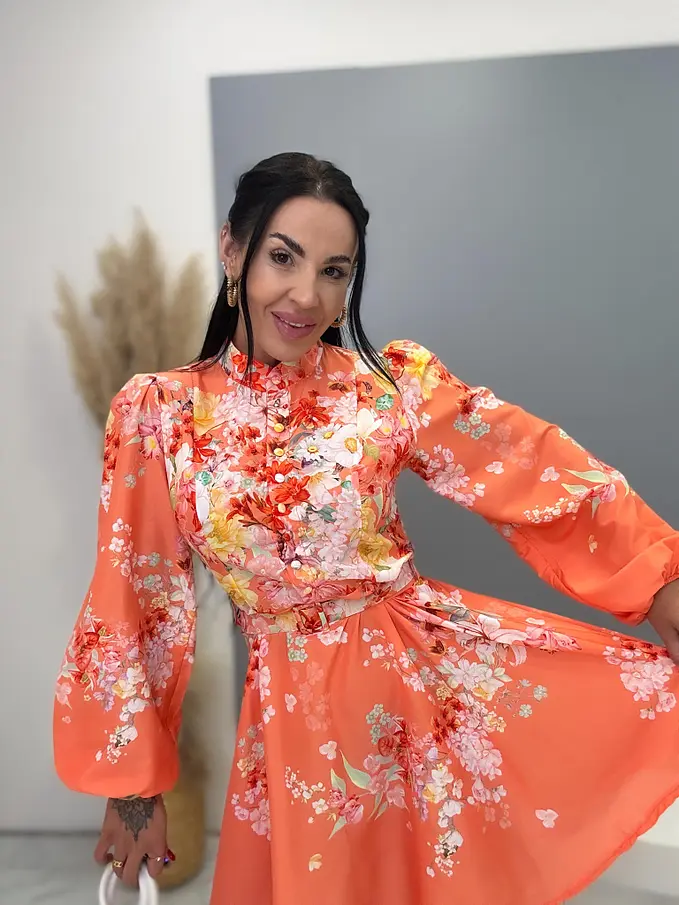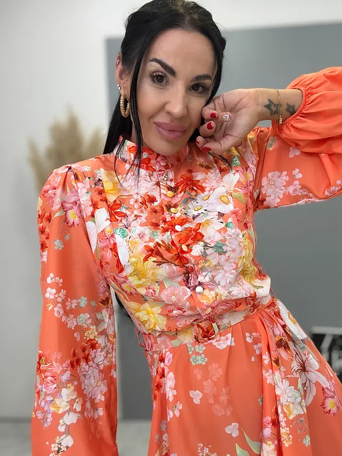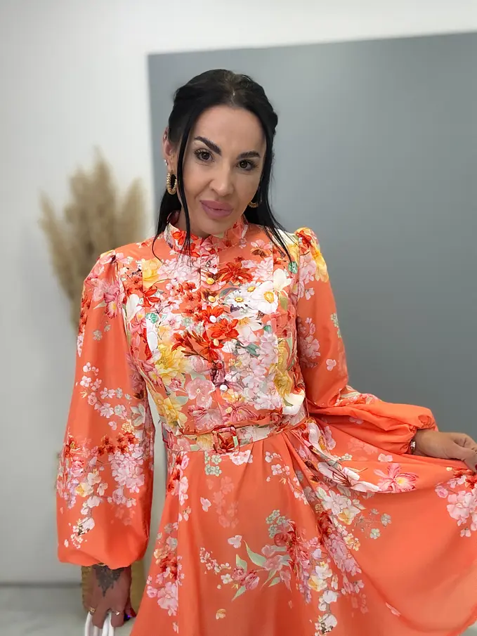Prémium ruha közvetlenül Olaszországból. Virágmintás ruha gombokkal és övvel. Az anyag rugalmas.