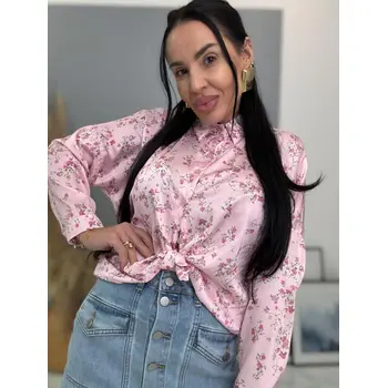 Ez a nőies blúz tökéletes választás a tavaszi–nyári szettekhez. A gombjai sárga színűek. Anyaga könnyű, kényelmes viselet egész napra. Derékban megkötős.