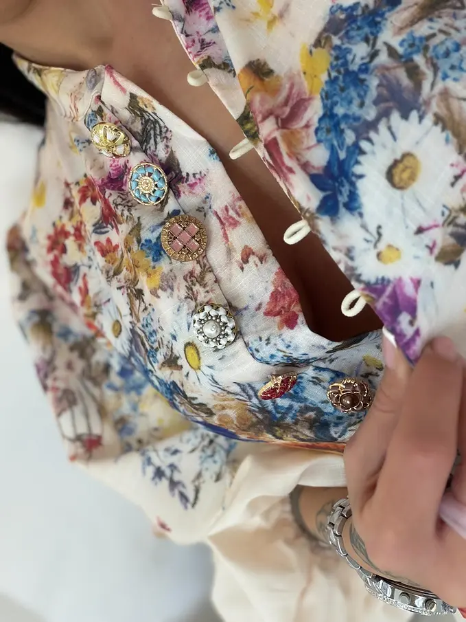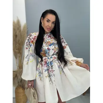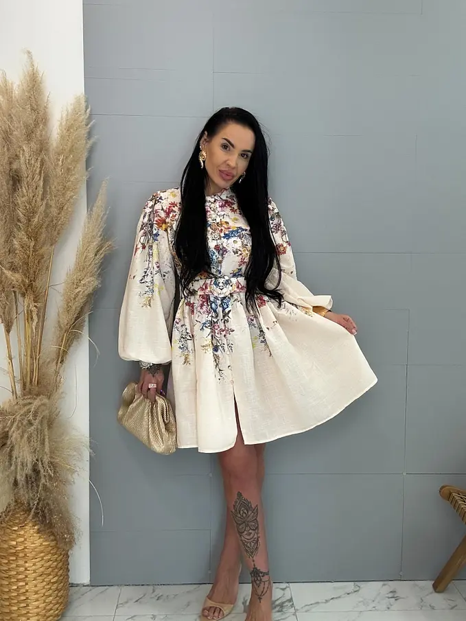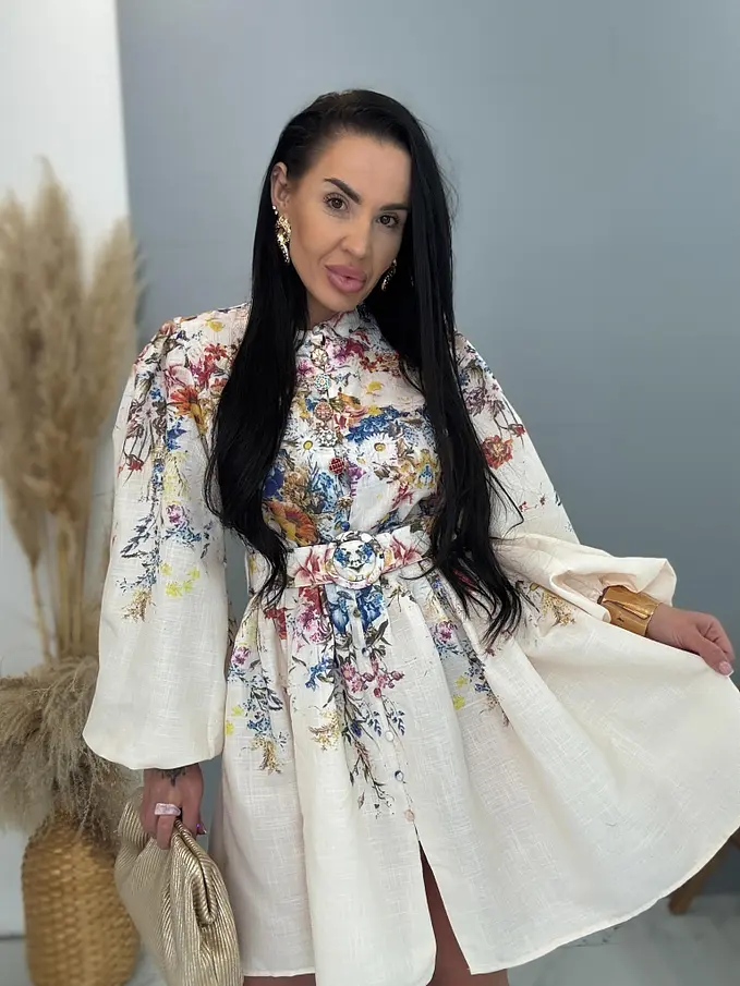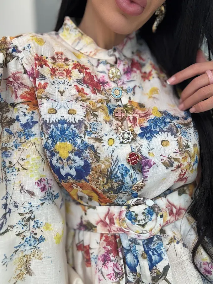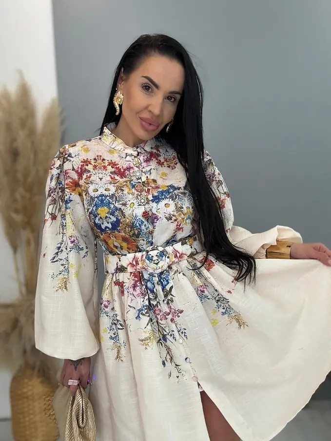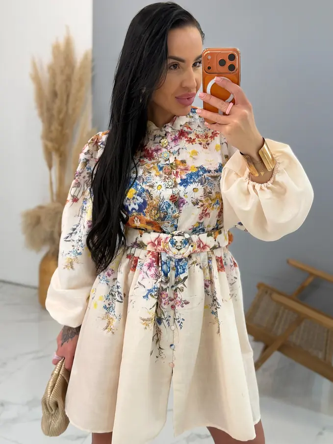 Virágmintás ruha díszgombokkal és övvel WONDER