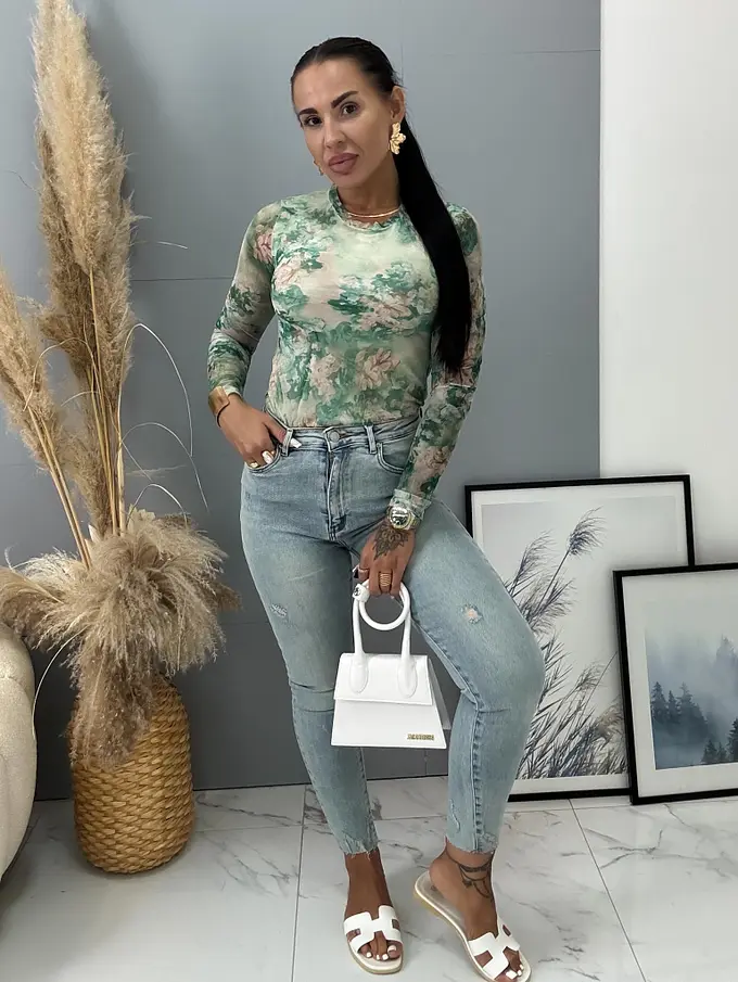 A fekete hajú modell 164 cm magas és 57 kg. S méretet visel.
