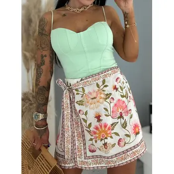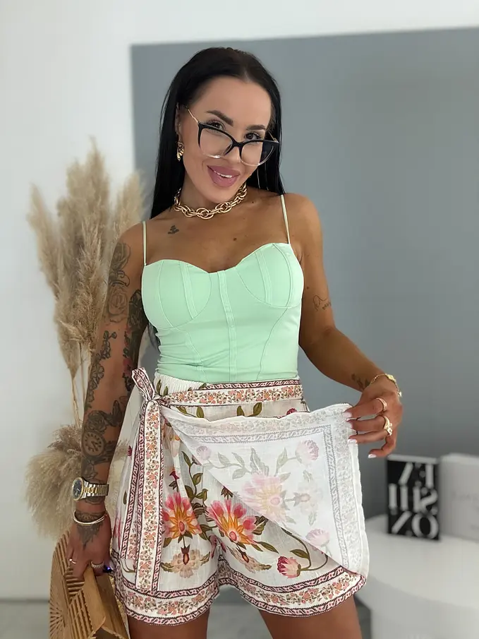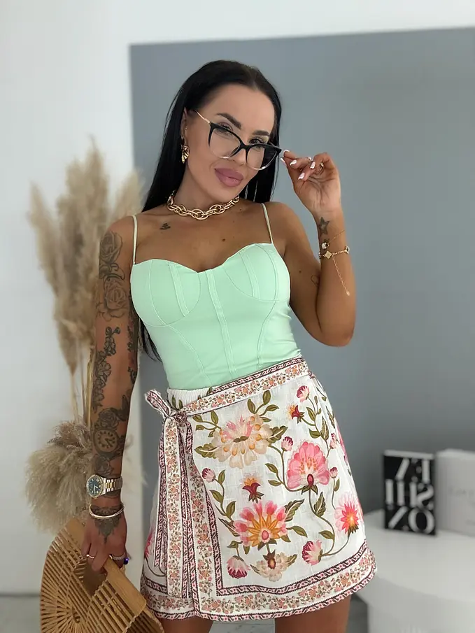 Virágmintás szoknyanadrág (skort) – könnyed, nőies és kényelmes nyári viselet, amely egyszerre biztosítja a szoknya elegáns megjelenését és a nadrág praktikusságát. Légies anyagának köszönhetően ideális választás a melegebb napokra, legyen szó mindennapi viseletről, sétáról, nyaralásról.