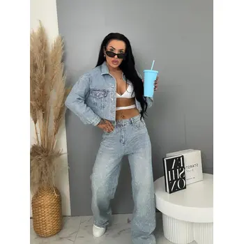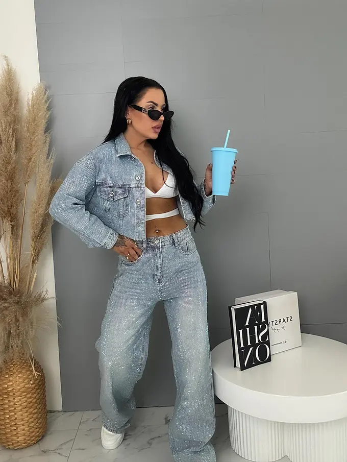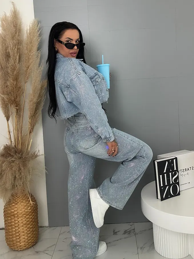 Wide leg strasszköves farmernadrág RAINBOW DIAMANT
