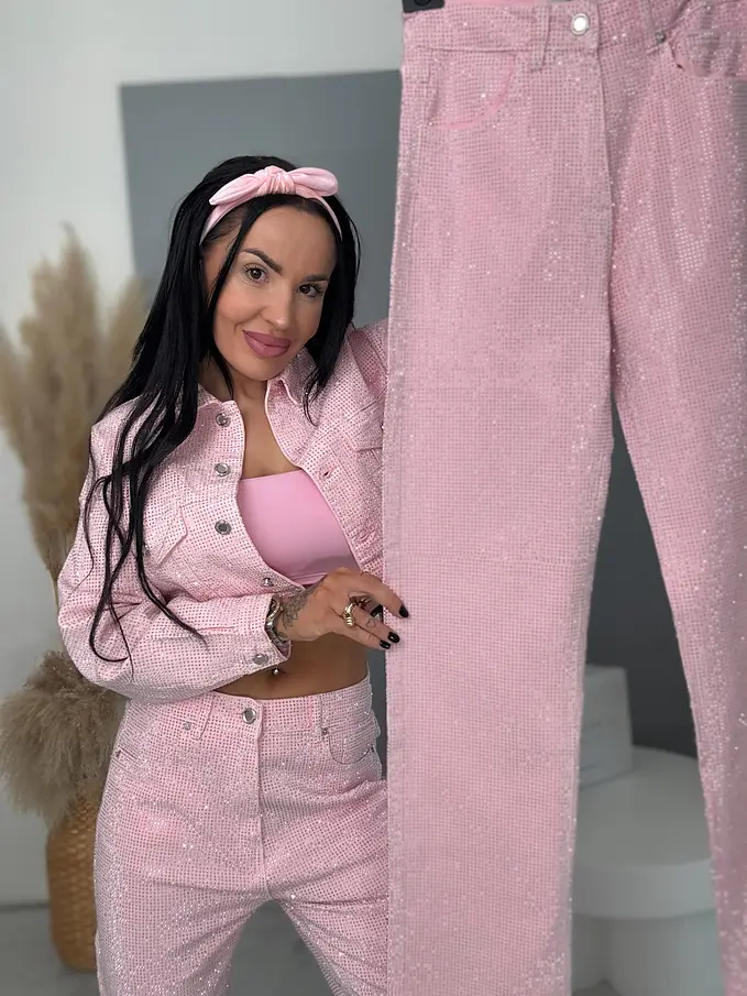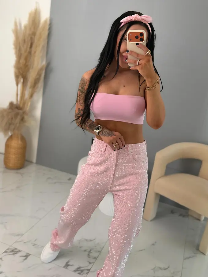 Wide leg strasszköves farmernadrág RAINBOW DIAMANT